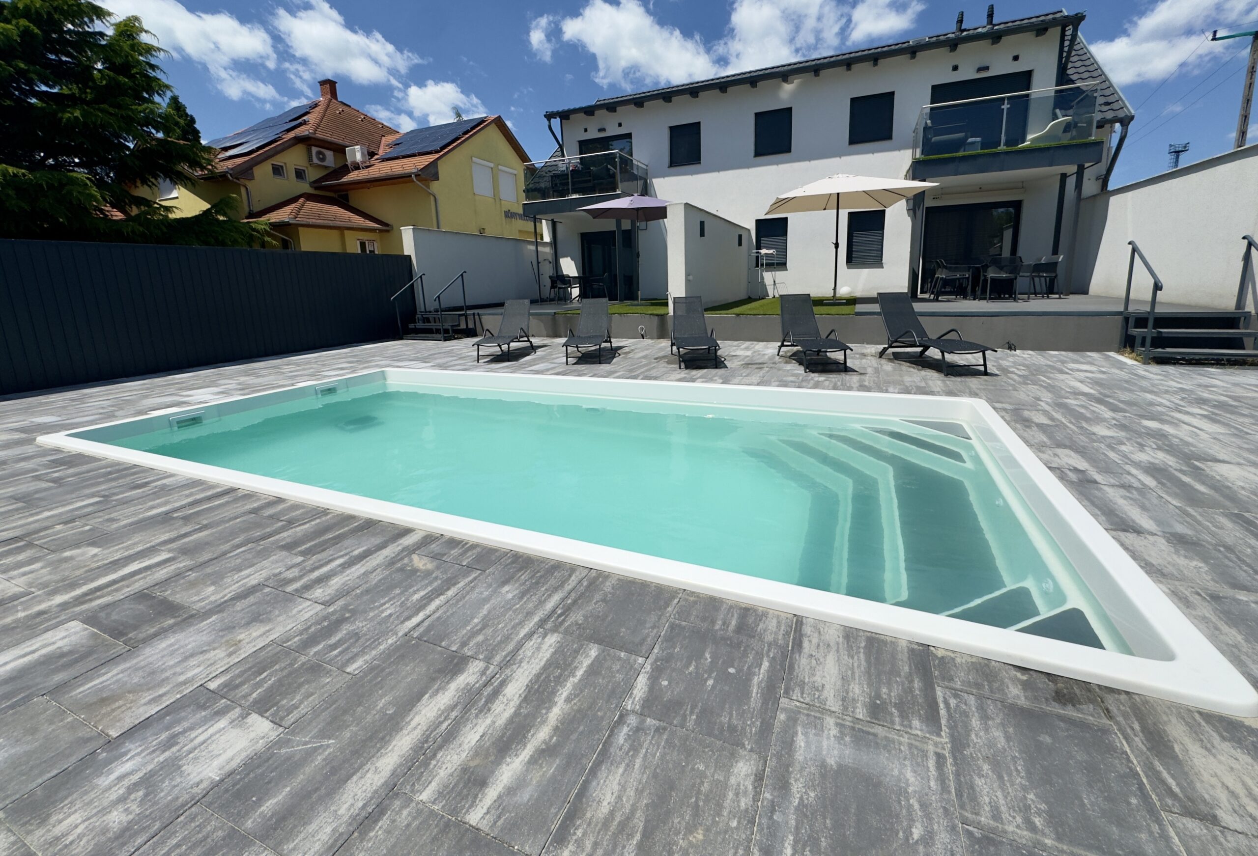 Az ingatlan területén belül 3 teljesen különálló apartman található, az ingatlanokat a közös udvar fogja össze.